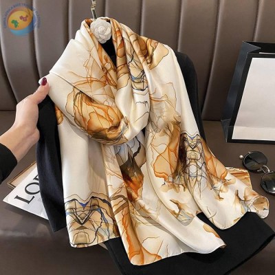 洋气披肩围巾新款印花仿真丝装饰百搭防晒