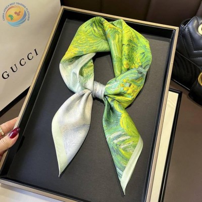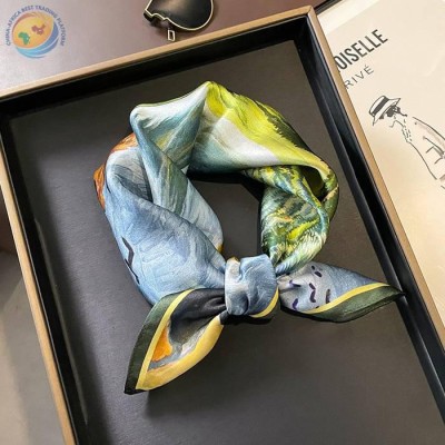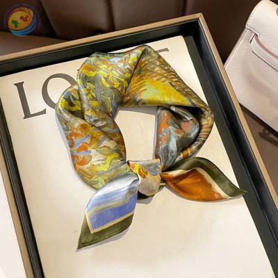 Mulberry silk oil painting grass van Gogh Spring and autumn cervical protection warm silk scarf