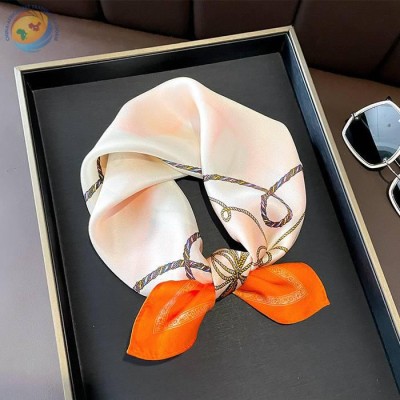 Orange silk scarf small square scarf simple everything with spring and autumn small scarf