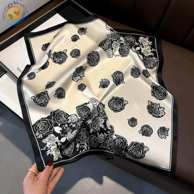 Chinese style printed silk small square scarf soft silk face spring and summer shawls