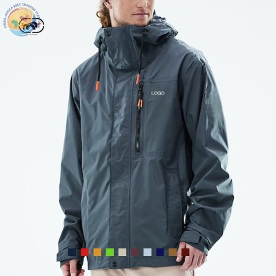 Men's Custom Lightweight Waterproof Softshell Hooded Jacket Outdoor Casual Raincoat Windbreaker Hiking Jacket