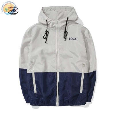 Custom Nylon Windbreaker Jacket Mens Lightweight Casual Drawstring Windbreaker Hoodie Jacket With Zipper