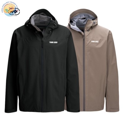 Manufacturer Custom Logo Waterproof Rain Jacket Softshell Jacket Polyester Nylon Full Zip Windbreaker Jacket Men