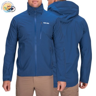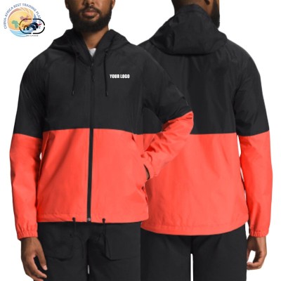 Custom Hooded Zipper Polyester Windbreaker Jacket Outdoor Camping Lightweight Waterproof Jacket Manufacturer For Men