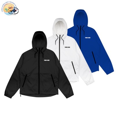 Custom Logo Mens Windbreaker Jacket Full Zipper 100% Polyester Windbreaker Rain Jacket