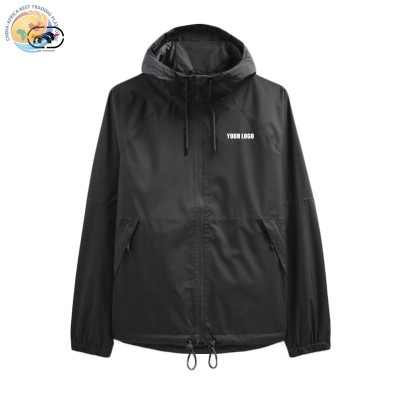 Custom Fashion Men's Windbreaker Hoodie Jacket Coat With Zipper Polyester Waterproof Running Outdoor Windbreaker Jacket
