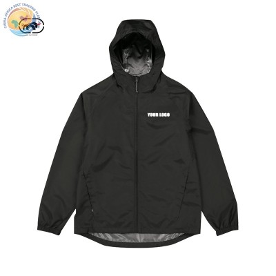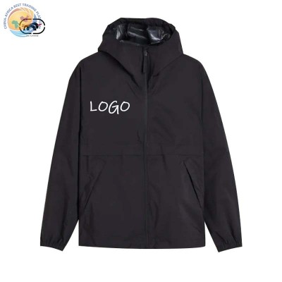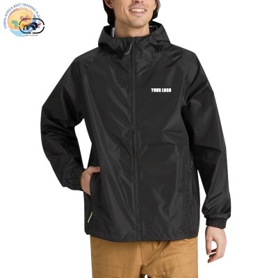 Custom Streetwear Zip Up Waterproof Black Windbreaker Men's Outdoor Jacket Packable Thin Nylon Hood Windbreaker Jacket