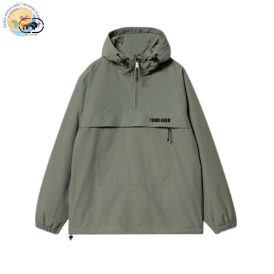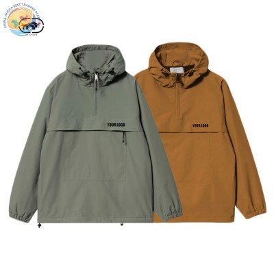 Oem Custom Lightweight Nylon Street Wear Men Windbreaker Jacket Vintage Hooded Half Zip Outdoor Windbreaker Jacket