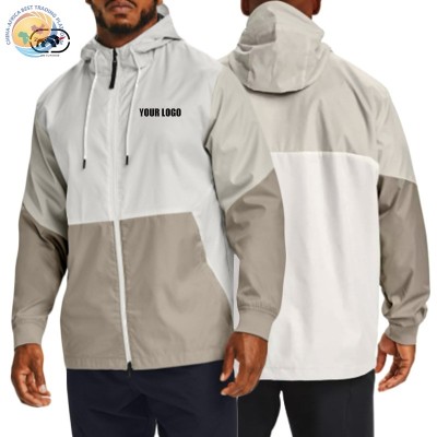 Custom Printed Logo Light Weight Nylon Outdoor Waterproof Oversized Men's Hooded Windbreaker Zip Up Jackets
