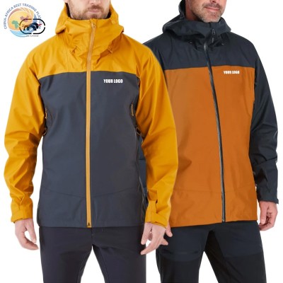 Custom Men's Fashion Mountain Waterproof Jacket Nylon Windproof Hood Outdoor Hard Shell Jacket