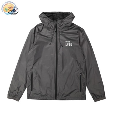 定制标志全拉链风衣夹克轻柔韧可包装风风衣夹克可调节兜帽