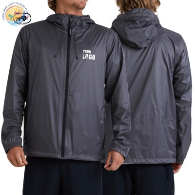 2024定制新设计尼龙防水雨夹克连帽灰色男子风衣夹克