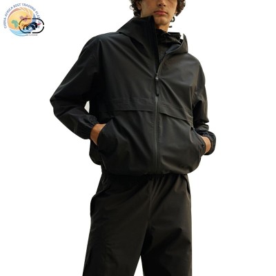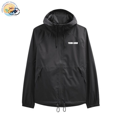 定制户外防水防风夹克跑步远足露营黑色夹克制造商