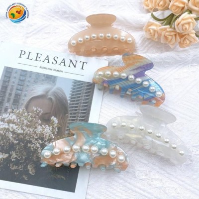 发夹后脑勺珍珠抓夹顶夹简约气质顶夹洗澡盘发大号