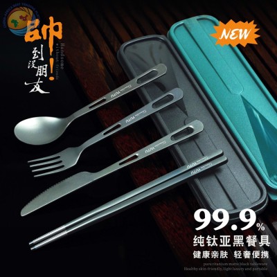 纯钛筷子刀叉勺家用钛餐具户外旅游富贵银餐具优雅黑筷叉勺厂家