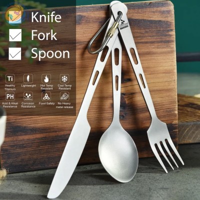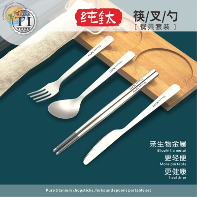 纯钛便携式餐具套装勺叉筷子户外旅行野餐露营餐具三件套