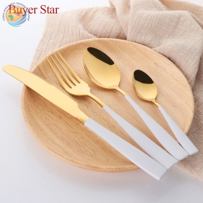 买家之星不锈钢餐具镀钛4件套装家庭和酒店刀具与激光标志