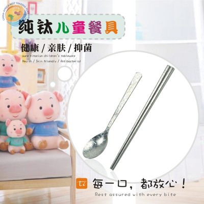 纯钛儿童筷子钛合金勺子非不锈钢户外成人餐具冰花结晶筷勺套装