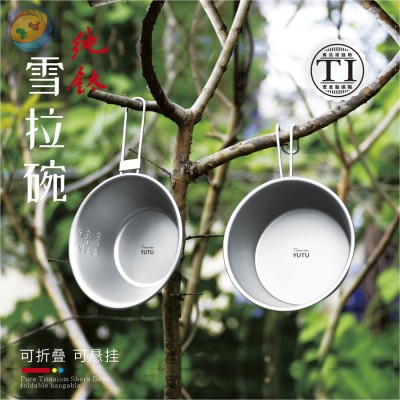 户外纯钛折叠雪拉碗固定手柄饭碗泡面碗露营野炊钛杯便携直径13CM