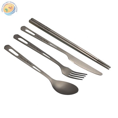 Jycj24新设计旅行餐具8件套钛刀勺叉便携式餐具套装防水袋