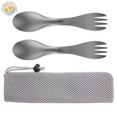 玉明工厂2合1叉子和勺子组合,超轻型野营餐具器具银器,旅行钛叉