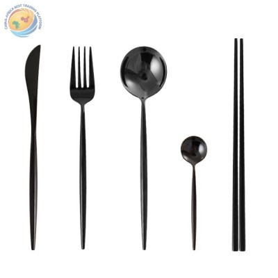 黑色哑光重型餐具餐具组器具钛餐具组不锈钢餐具