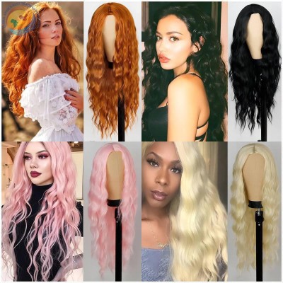2024 Foreign trade new wig female side points black high temperature silk chemical fiber fluffy long curly hair cover manufacturers wholesale