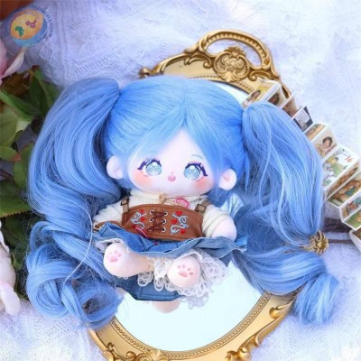 Cotton Doll wig Set 20cm pink highlights Blue long curly hair doll doll with fake hair girl