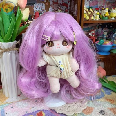 Cotton Doll new wig 20cm light purple wool roll high temperature silk long curly hair human doll doll fake head