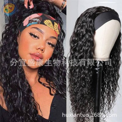 Amazon cross-border new African fashion headscarf with wig Black small roll mid-roll hair chemical fiber hair cover