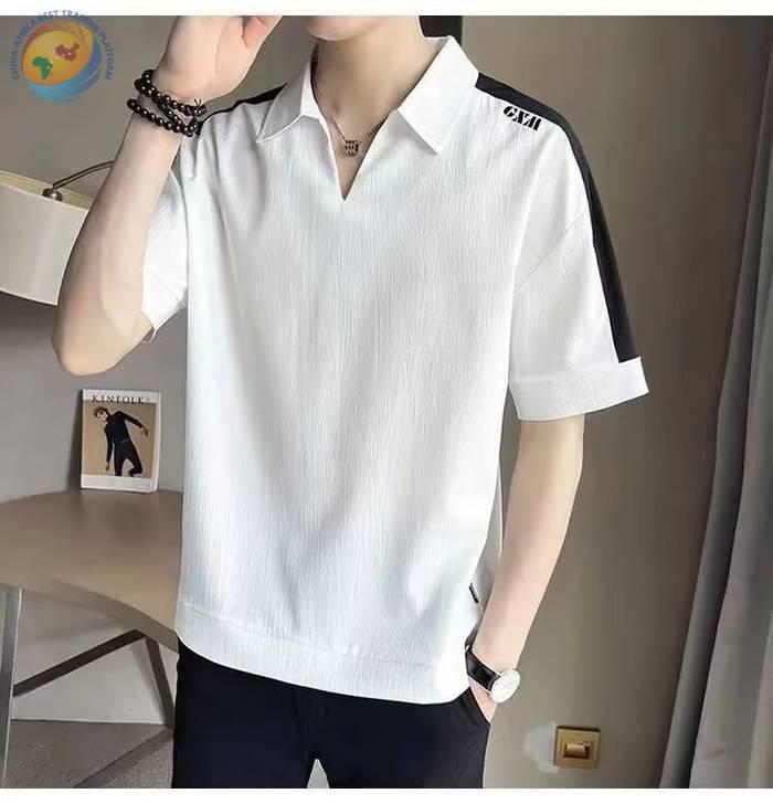 男士夏季薄款潮牌衬衫v领半袖男装休闲冰丝polo衫体恤上衣短袖t恤