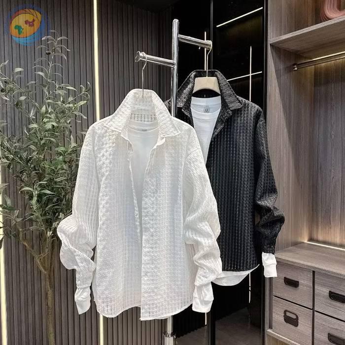 Men's T-Shirt2024男士新款T恤宽松休闲衬衫黑白长袖春秋外搭上