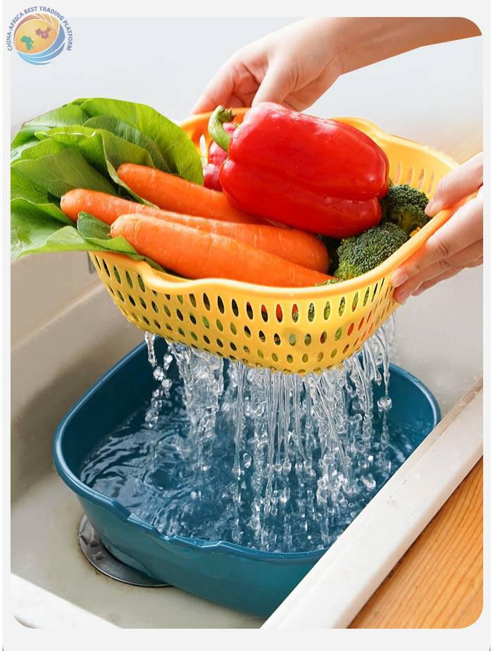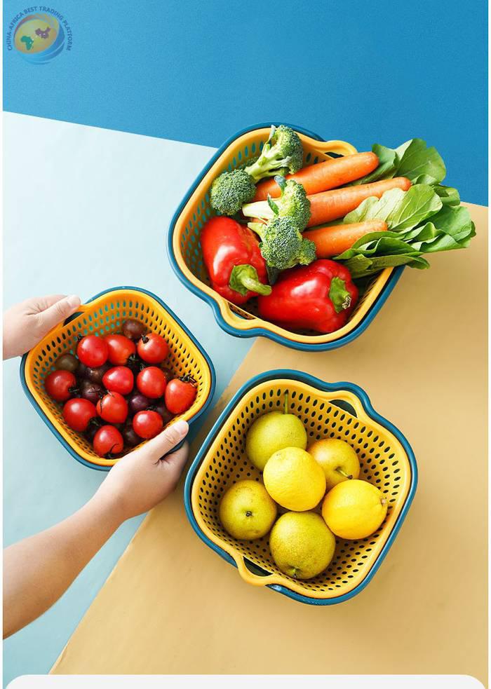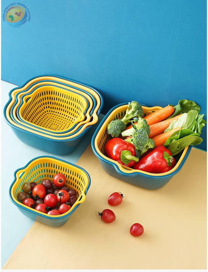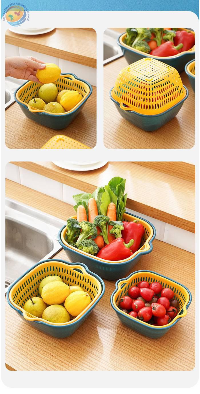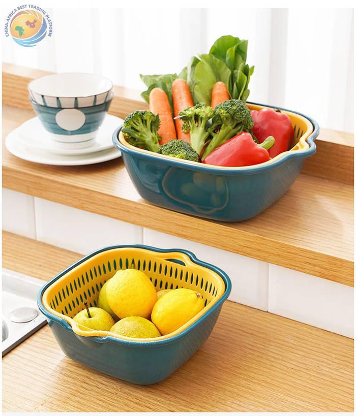 多功能水果蔬菜盆家用方形撞色淘米沥水篮厨房塑料双层洗菜沥水篮