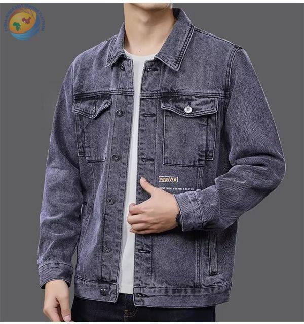 牛仔外套男蓝色水洗弹力男士夹克宽松潮流大码印花牛仔衣褂子外套