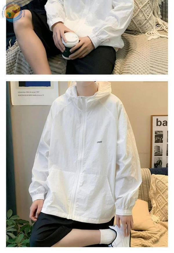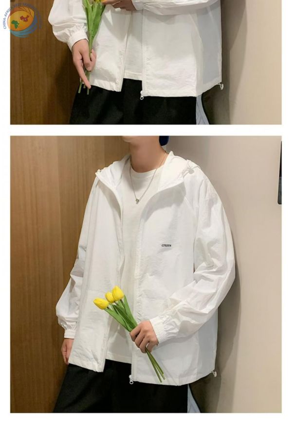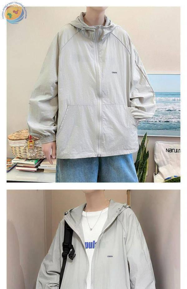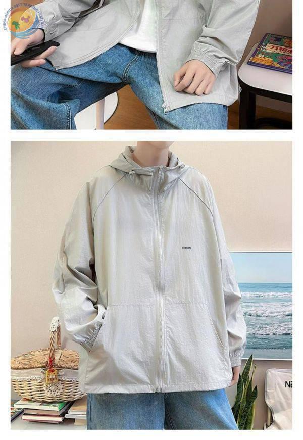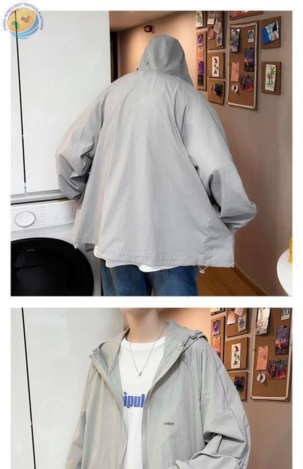2023 Summer men's sunscreen clothing trend Lazy men zipper youth popular hooded fashion solid color trench coat loose type