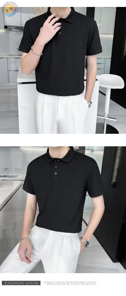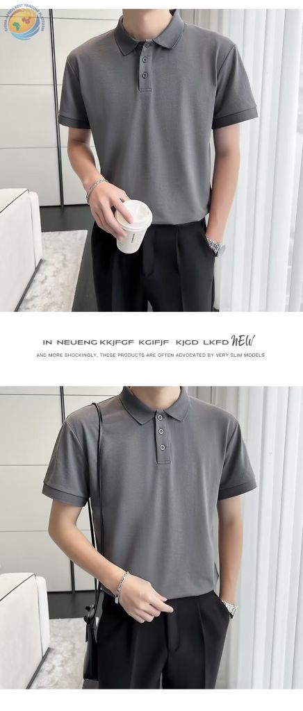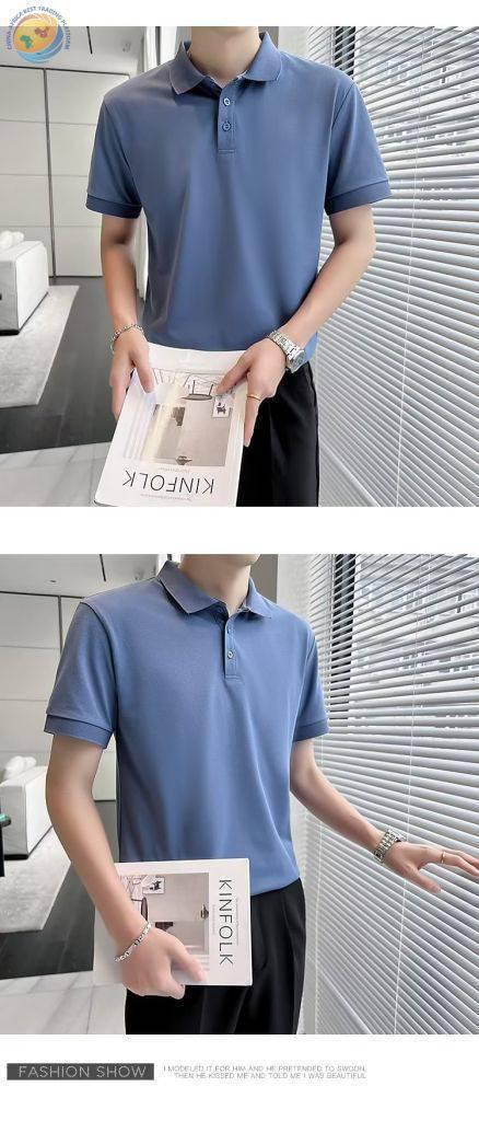 Korean thin fashion solid color business casual Paul shirt temperament men\'s polo shirt