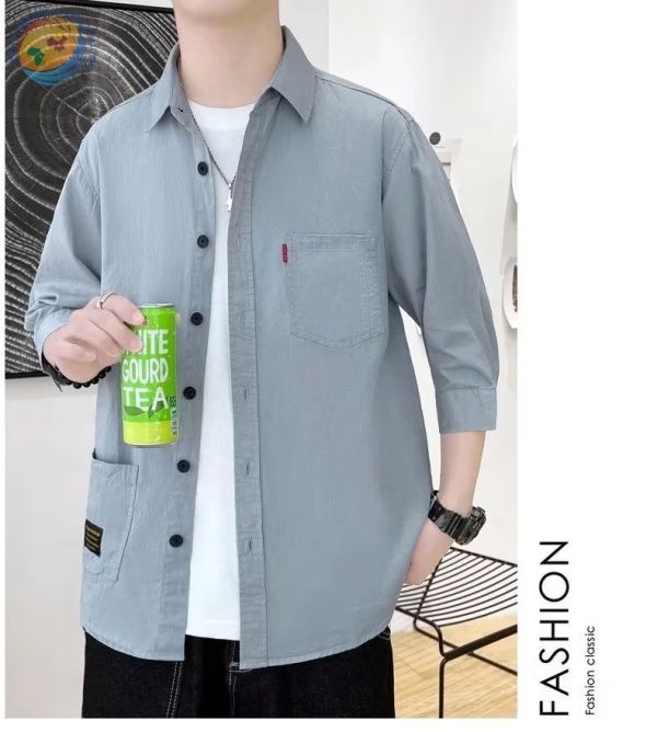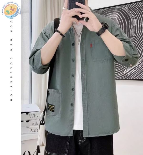 Loose cargo cotton coat shirt youth fashion brand shirt long sleeve shirt for men