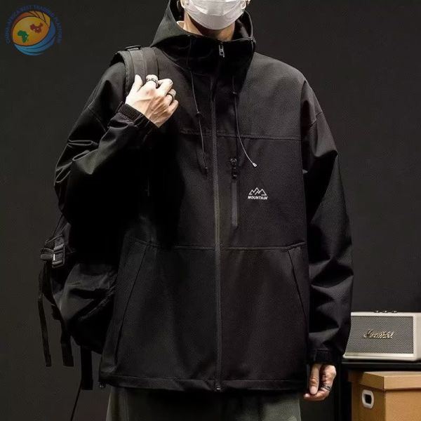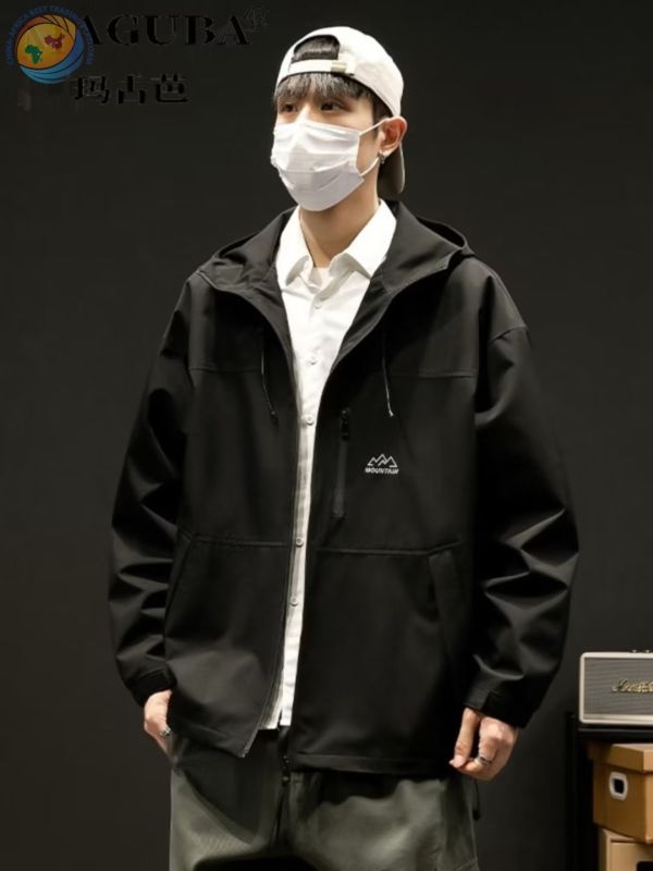 男士潮流宽松夹克休闲连帽高级外套美式冲锋衣