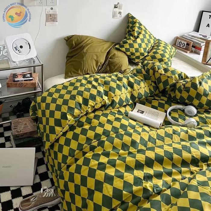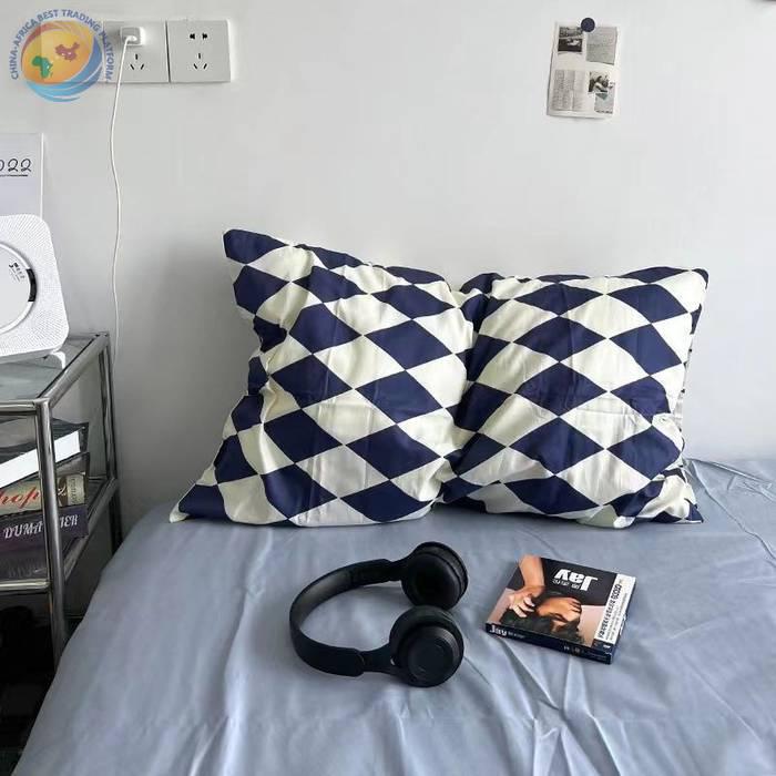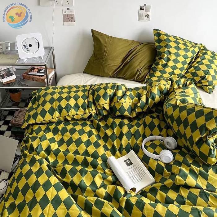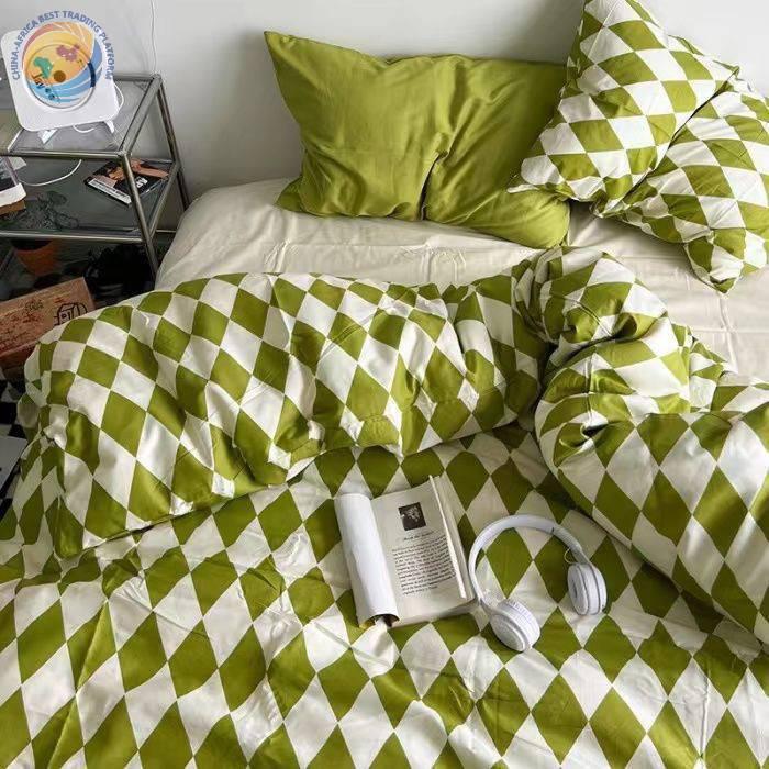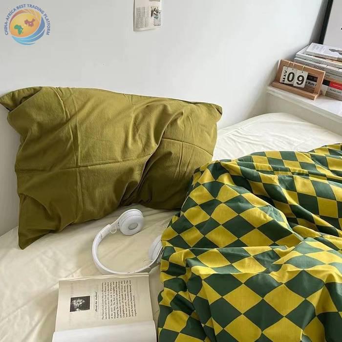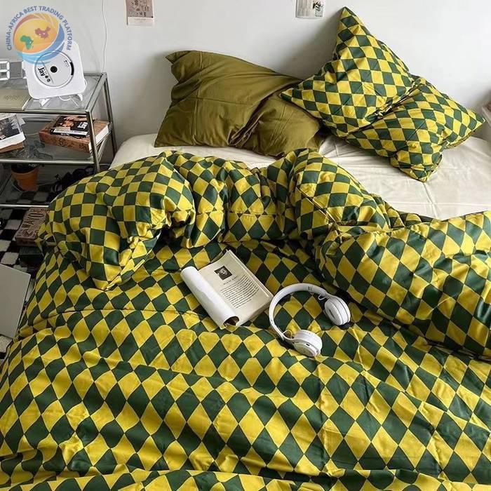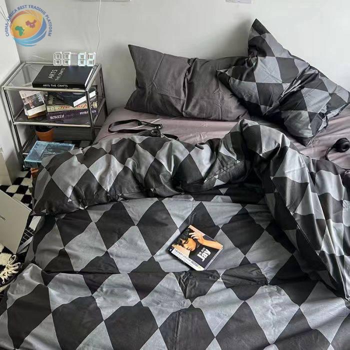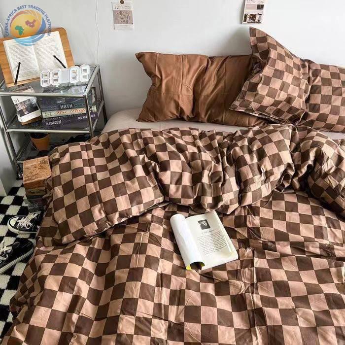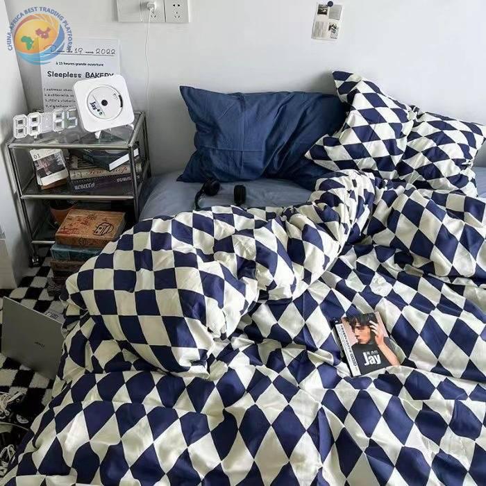 ins复古格北欧风水洗棉四件套宿舍床单三件套