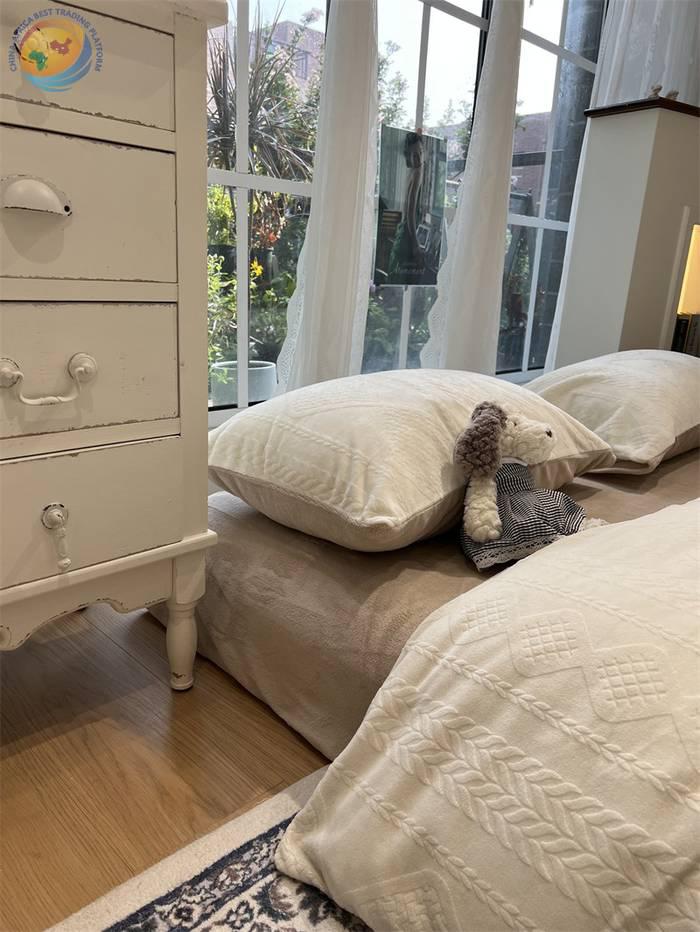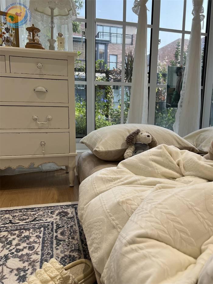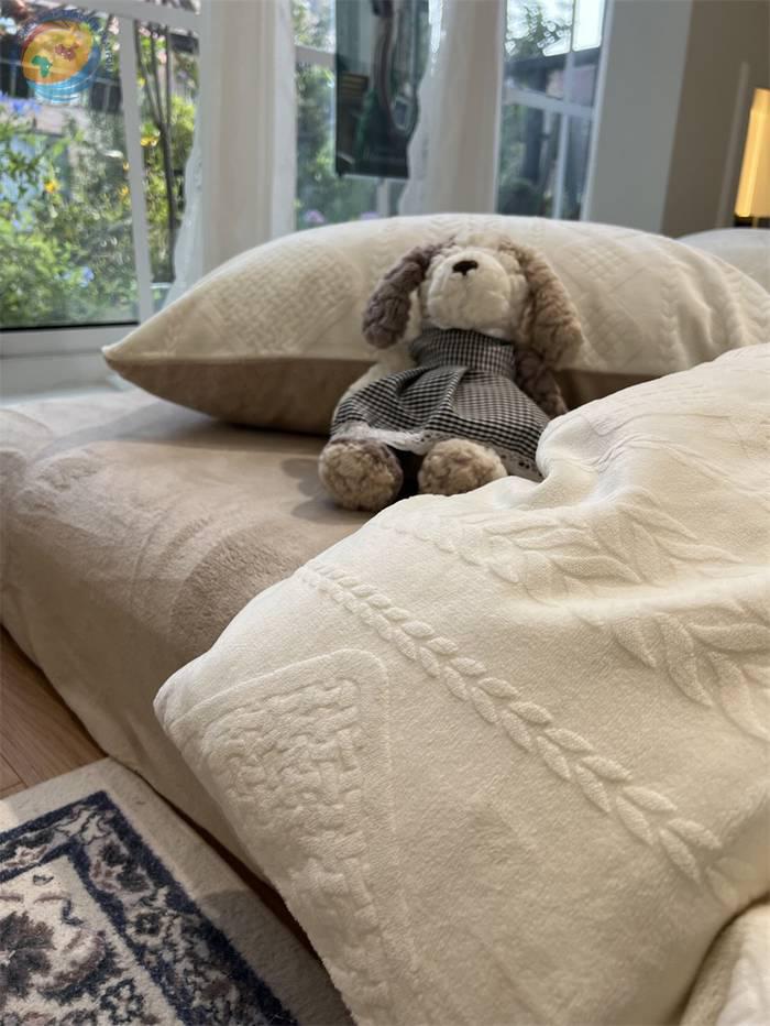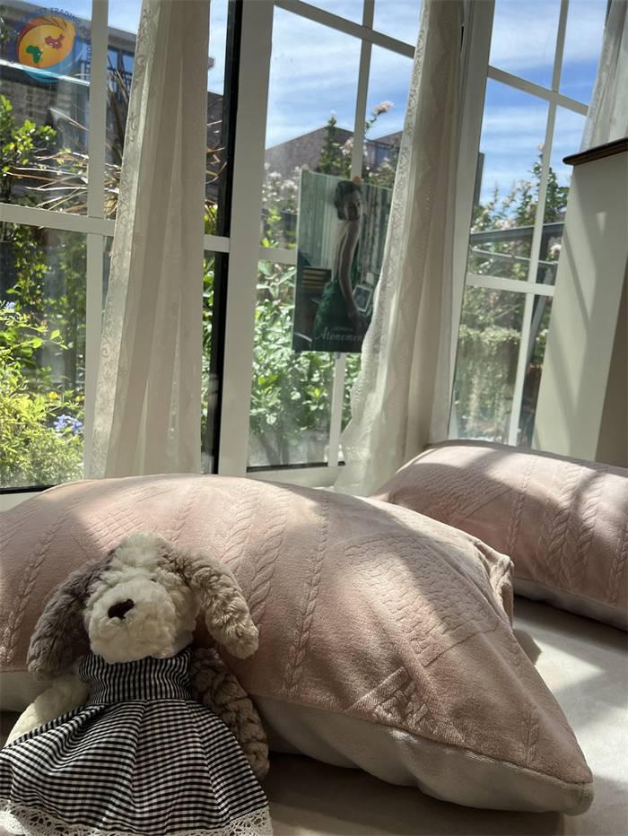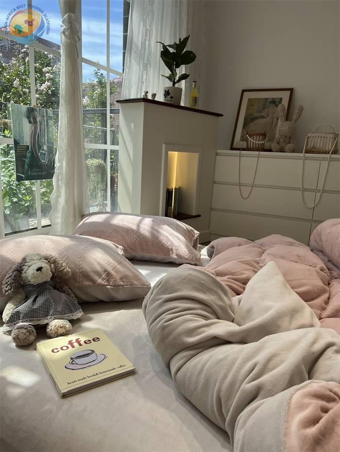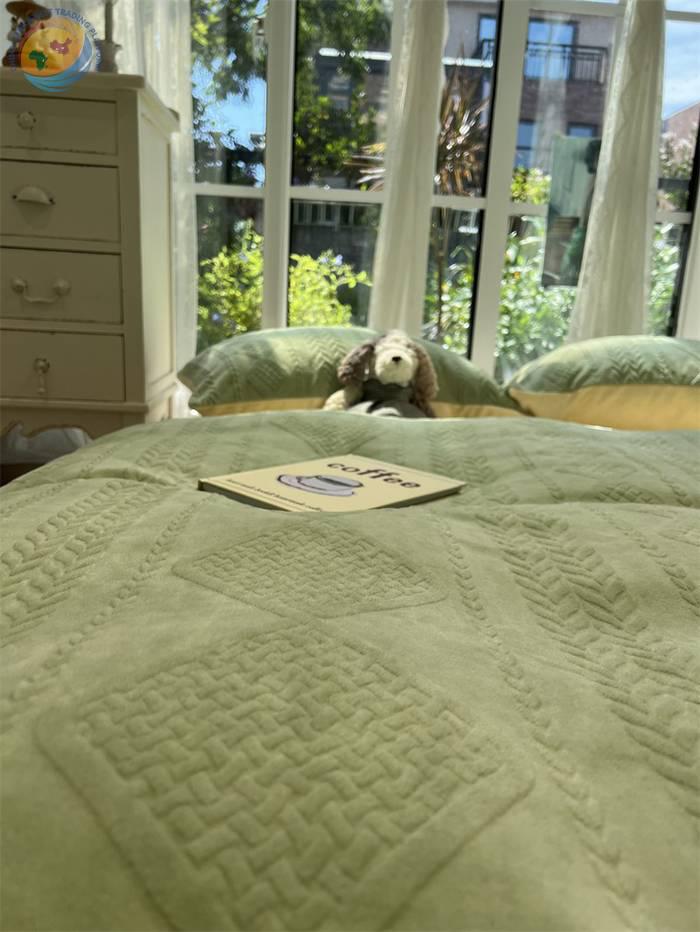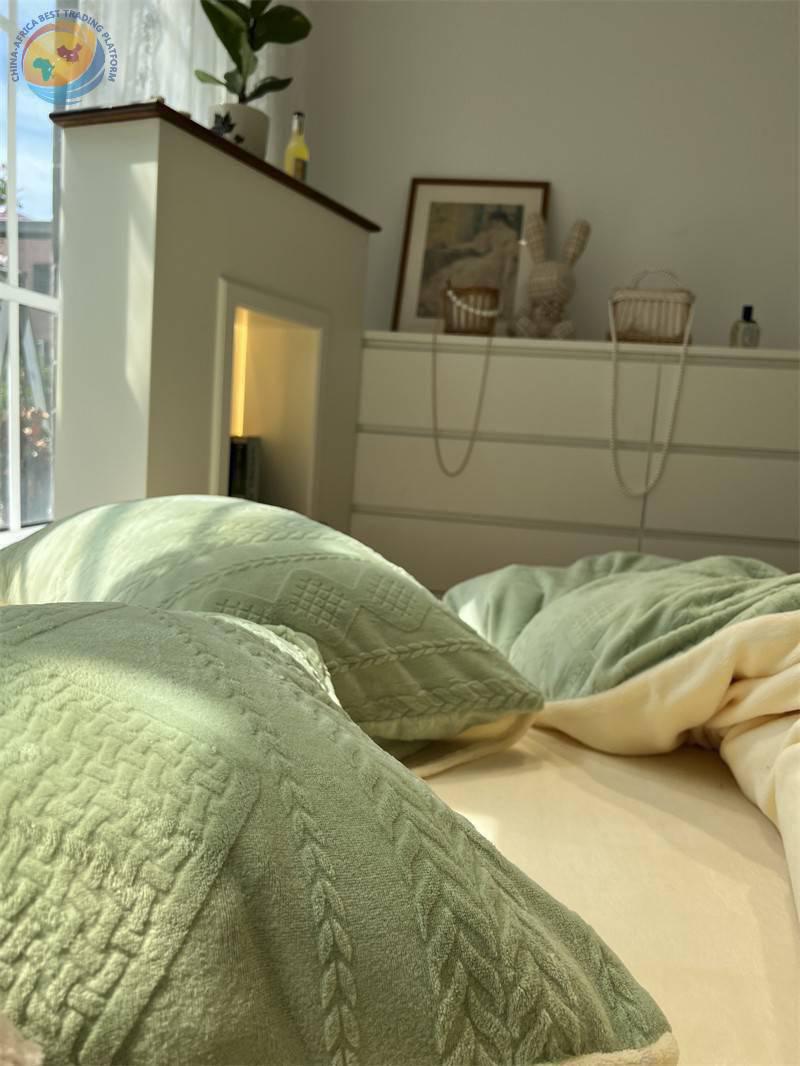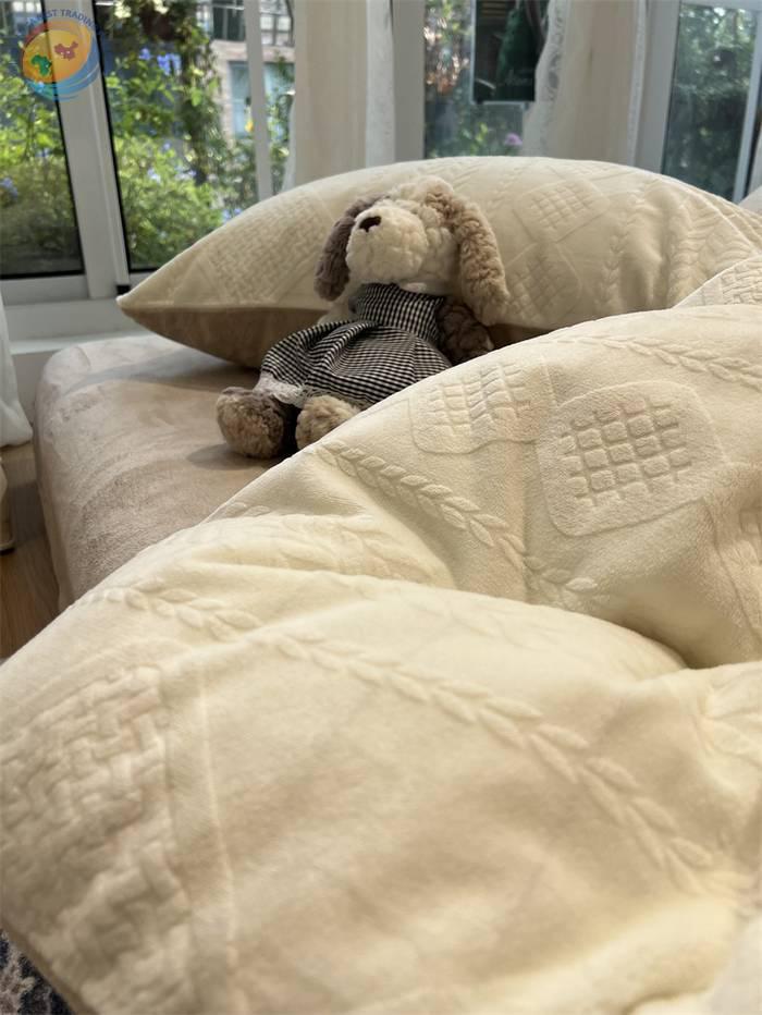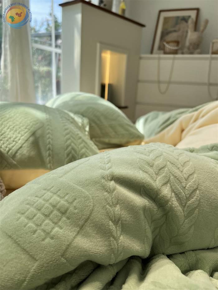 ins冬季法兰牛奶绒立体雕花简约奶黄色床上四件套珊瑚绒1.5m1.8米