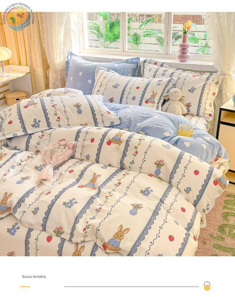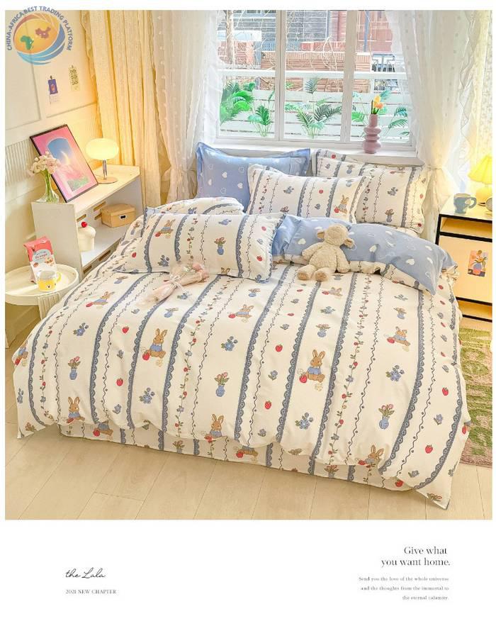 ins纯棉60支床上用品四件套全棉小清新学生宿舍被套全棉床笠4件套