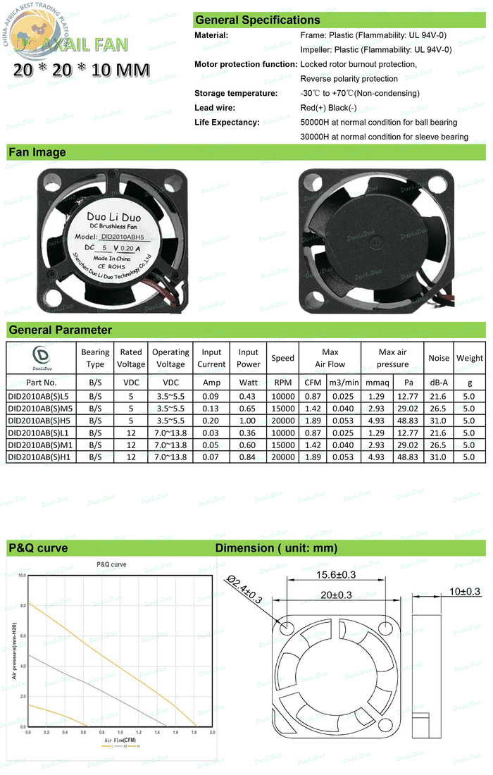 2010 20mm高速安静低瓦5V 12V直流迷你轴流无刷风机
