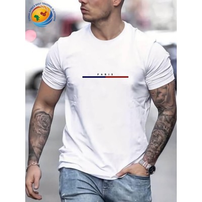 男式 100 棉巴黎短袖 T 恤上衣(宽松 T 恤 衬衫)