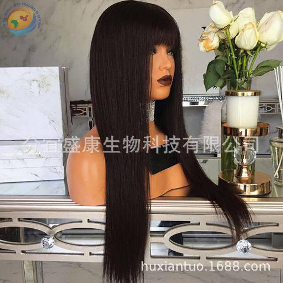 欧美女士假发齐刘海长直发柔顺逼真化纤发哑光高温丝玫瑰网假头套