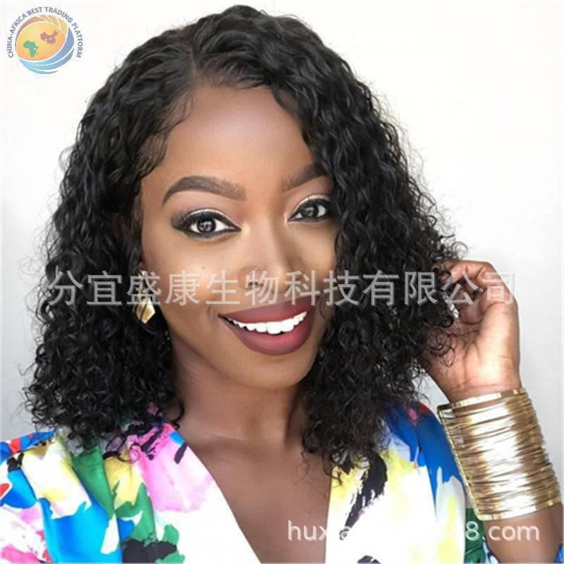 跨境缠管新款假发外贸非洲时尚侧分小卷高温丝染色化纤发头套
