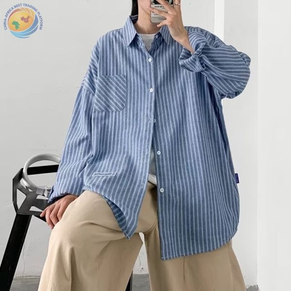 Men's Shirt Striped shirt Male 2023 spring design sense student shirt loose casual trend