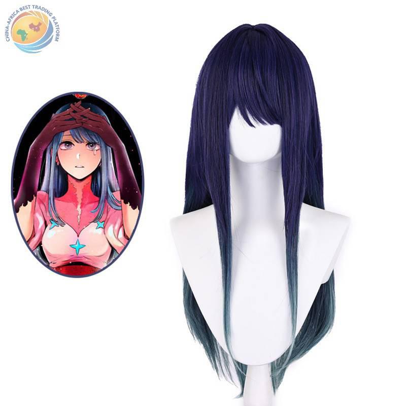 I push the child Kurokawa Akiko Long hair cos purple gradient teal long straight hair anime wig set