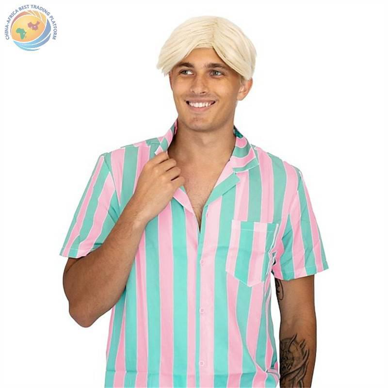 外贸新品欧美假发男士帅气淡金色斜刘海短发高温丝机制扣子网头套