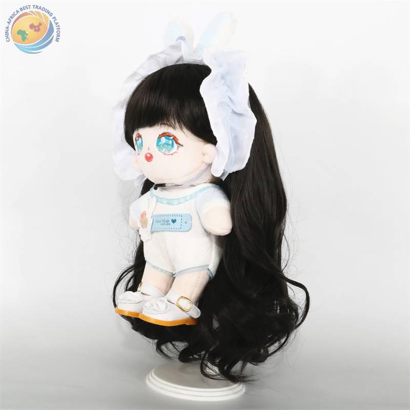 棉花娃娃假发20cm假发黑色长卷发人形玩偶公仔假头发女 厂家现货
