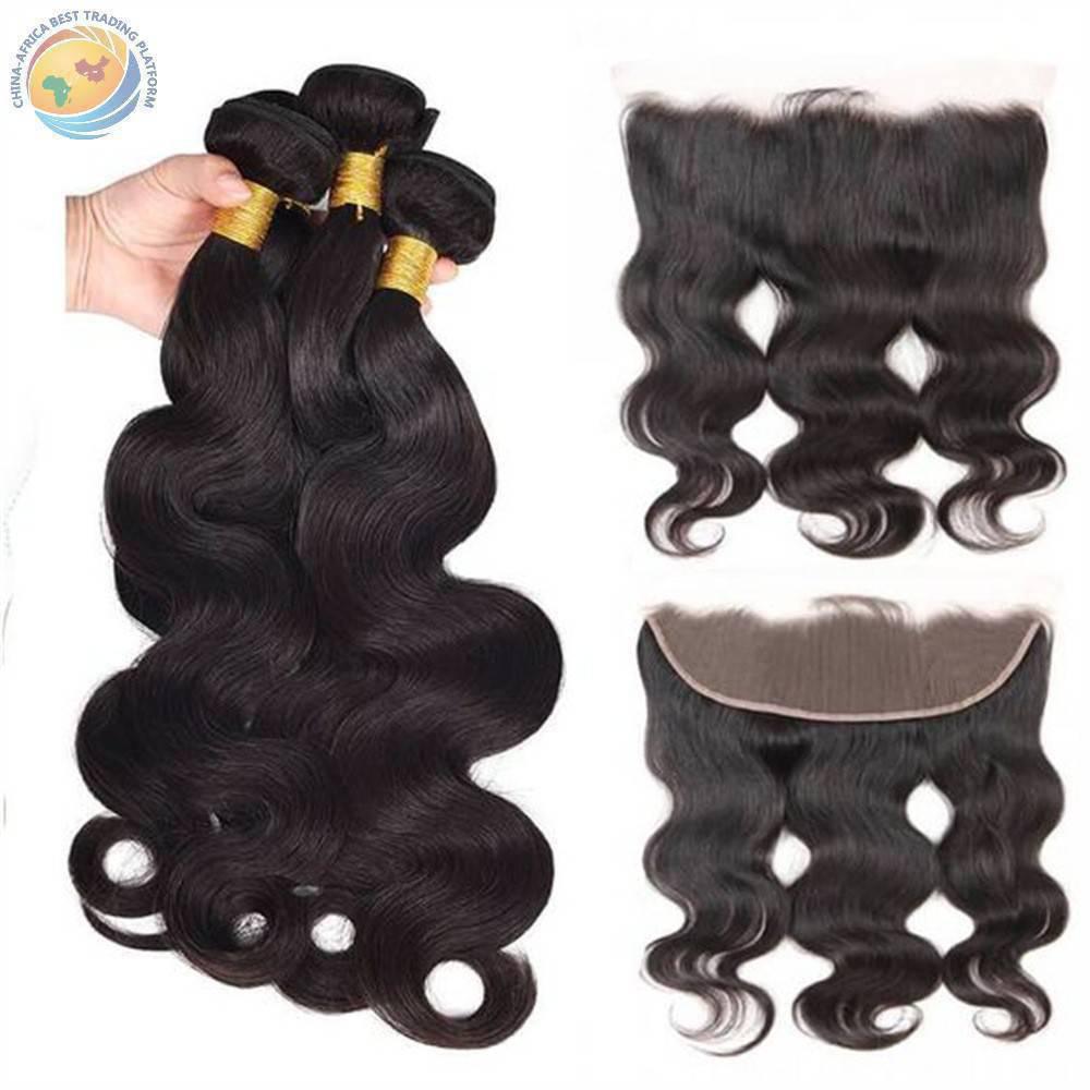 Virgin Human Hair Body Wave Lace bundles with 13*4 frontal